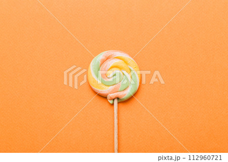 Colorful candies, lollypop on the colorful background, multicolored minimal style top view