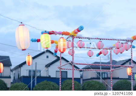 夕涼み会の風情 - 色とりどりの提灯付きやぐら