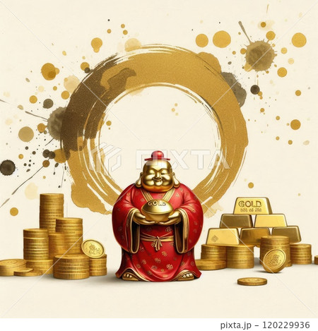 Chinese God of Wealth (Caishen) with Golden Coins - Luxury Neon Digital Art for Lunar New Year with Generative AI.