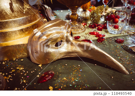 Vintage Masquerade Ball Illustration with Elegant Costumes