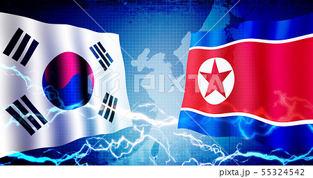 国際紛争・政治対立 / 汚れた国旗イラスト (韓国 vs 北朝鮮 )