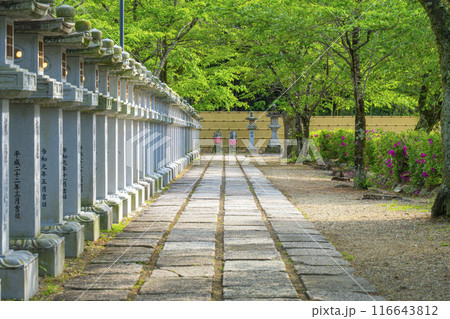 奈良 安倍文殊院 石灯籠と石段