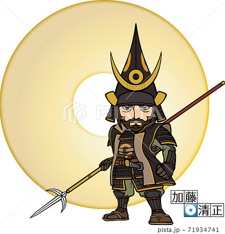 武装して槍を持って正面を向く加藤清正【3頭身】