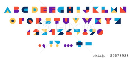 Geometric alphabet. Modern abstract typeface with numbers and punctuation marks, stylized colorful typography characters. Vector set