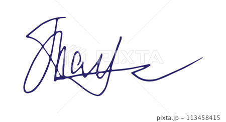 Fake signature hand drawn sample own autograph. Fictitious handwritten signature. Blue ink color. Scribble for sample contracts documents certificates or letters. Vector illustration.