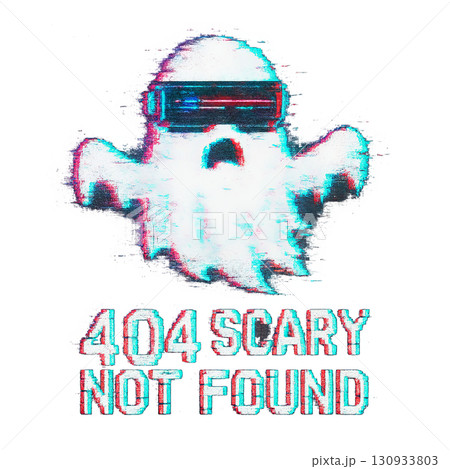 Halloween ghost graphic features text glitch effect, perfect for spooky backgrounds. Isolated on transparent background