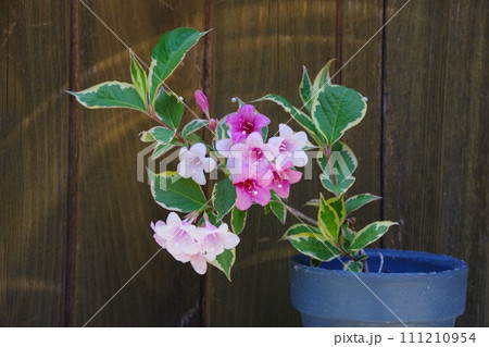 斑入り大紅ウツギの花咲く。花言葉は「豊かで美しい」そして「移り気」。