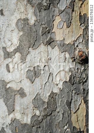 まだら模様の樹皮と木目の質感(プラタナス)|背景素材