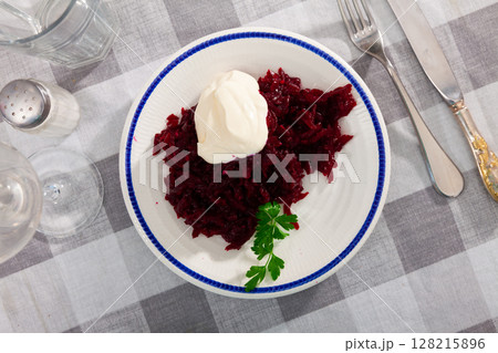 Fresh beetroot salad served on plate