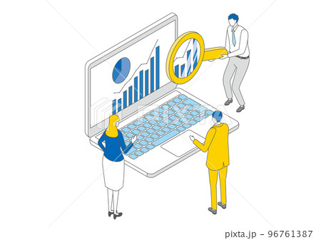 アイソメトリック_シンプル_マーケティンクをイメージしたアイソメトリックイラスト