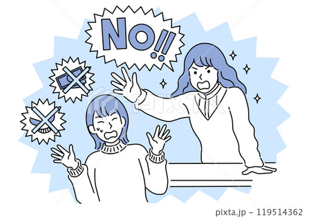 NOと言う女性・断る勇気・自己主張・シンプルでポップなベクターイラスト