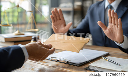 汚職を拒否するビジネスマンのジェスチャー
