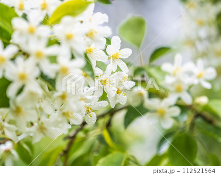 Shot of the trees in the garden blooming with leaves and flowers