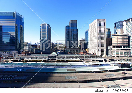 日本の東京都市景観 東京のビジネス街・丸の内などを望む。左下は東京駅
