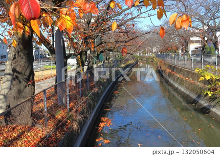 秋の見沼代用水東縁:浦寺橋より上流を望む(埼玉県川口市)