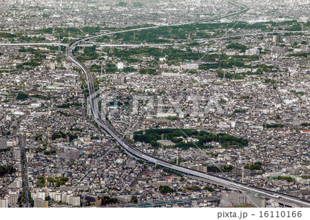東京外環自動車道と首都高速の交わる川口ジャンクション付近を空撮
