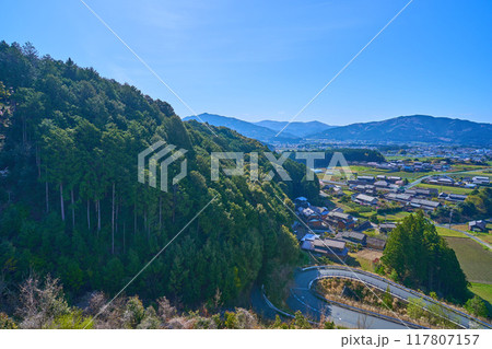 愛知県新城市の新東名高速道路 長篠設楽原PA下り展望台からの新城市風景