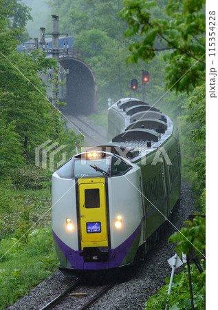 オサワ信号場を通過して長和トンネルに駆け込んでいく特急「とかち」