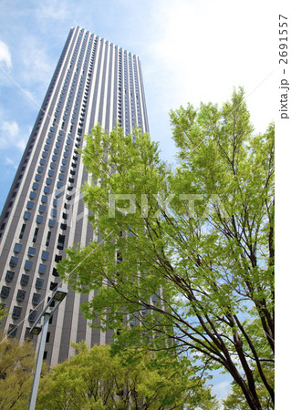新緑と青空にそびえる新宿センタービル