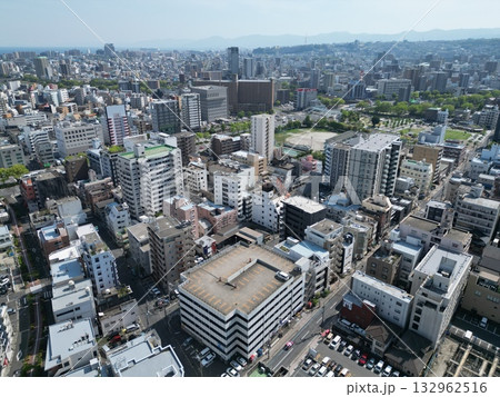 鹿児島中心部の樋之口町、新屋敷町方面の街並みの空撮