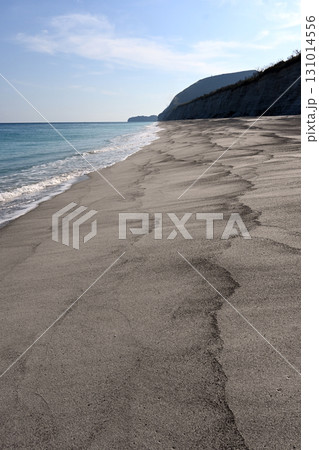 東京都大島町にある黒砂のロングビーチの砂の浜の風景