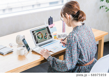 整理整頓をするテレワークの若い女性