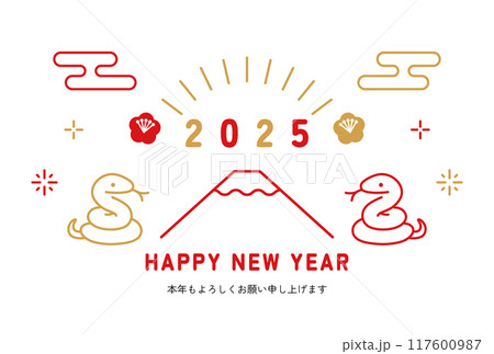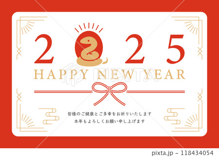 2025年巳年の年賀状テンプレート 蛇年 かわいい ベクター