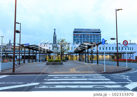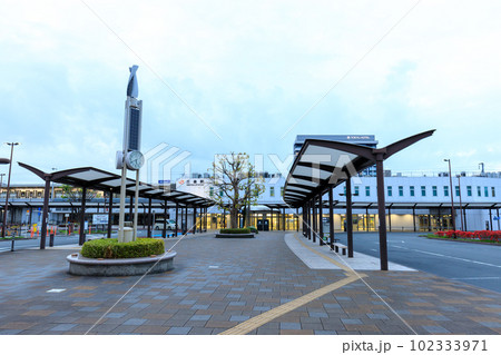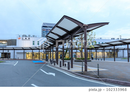 静岡_夜明けの三島駅の駅前風景(終電乗り過ごし返送者の見る風景)