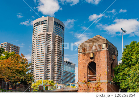 《東京都》住宅街から見上げた青空に映える六本木ヒルズ