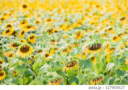 <安曇野>新村ひまわり畑 松本大学正門横のひまわり畑