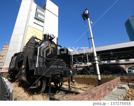 都市風景 新橋駅西口広場のSLと街並 東京都港区