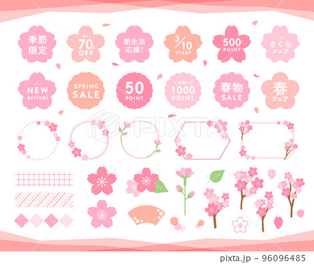 春の桜のフレームと飾りのセット 装飾 さくら 背景 花 新生活 新春 3月 4月 年賀素材 満開