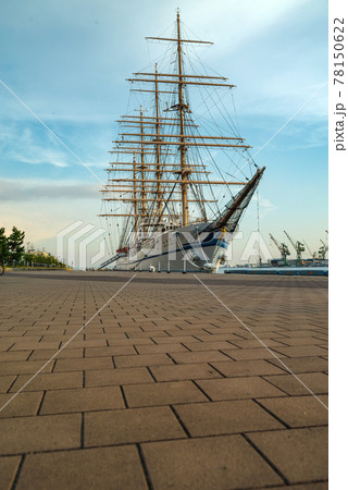 兵庫県神戸市・新港第1突堤に停泊停泊中の日本丸と神戸港の風景