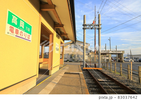 万葉線 終着駅の越ノ潟駅とアイトラム車両(富山県射水市)