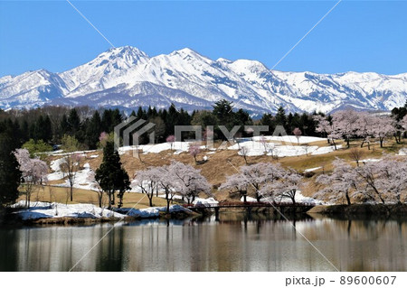 満開の桜と頸城アルプス 糸魚川市美山公園
