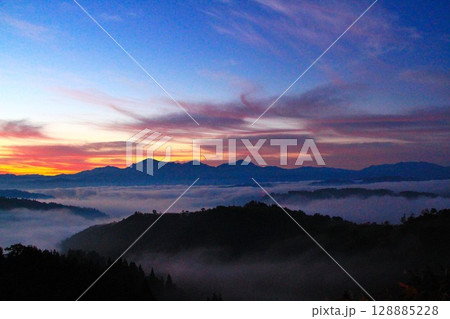 新潟県小千谷山本山高原からの雲海朝焼けの夜明け