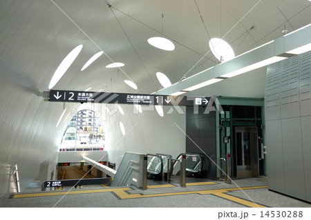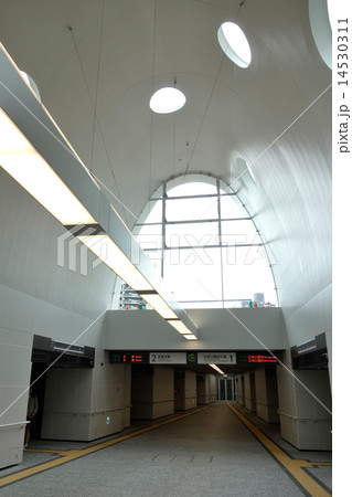 JR新白島駅(広島市)の駅舎、画面奥が駅の南北に抜けるための連絡通路