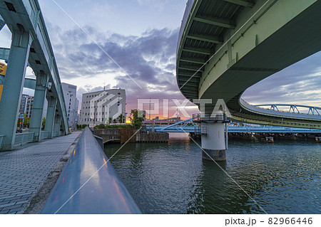 大阪夕暮れ慕情 昭和橋から大阪中央降売市場を望む