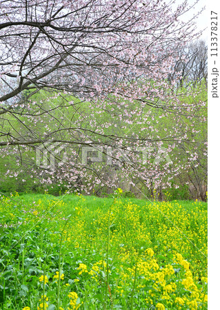 早春の訪れ エドヒガンザクラ桜と菜の花