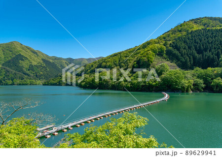 東京都奥多摩町 奥多摩湖のドラム缶橋(麦山の浮橋)