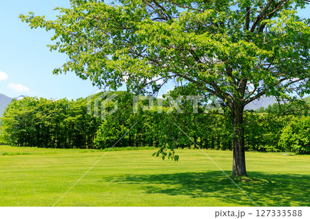 新緑の木々と広い草原の画像素材(写真・イラスト) 1ページ目