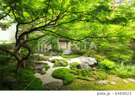 圓光寺の風景 書院から見た新緑の庭園 京都府京都市