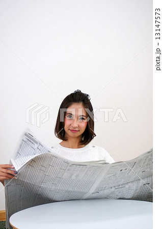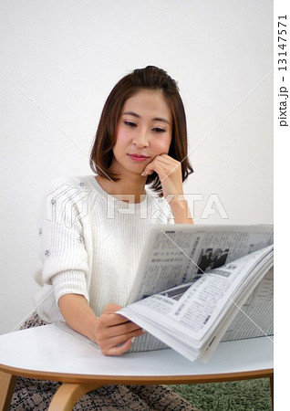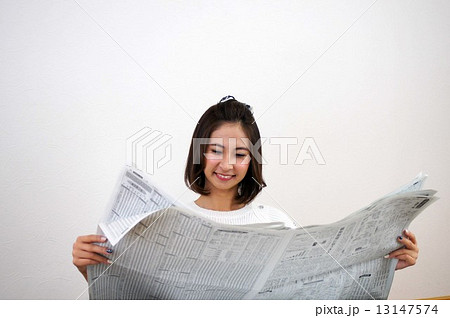 新聞を読む若い女性