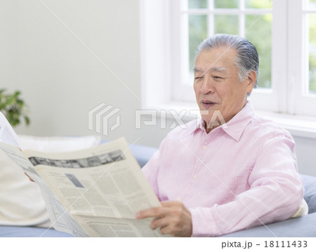 新聞を読むシニア男性