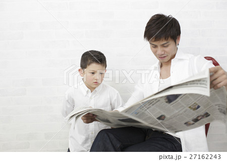 新聞を読む父と息子