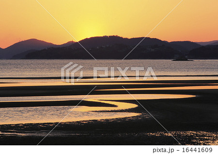 黄金色に輝く「新舞子浜の干潟」と播磨灘の夕景 /兵庫県たつの市御津町黒崎