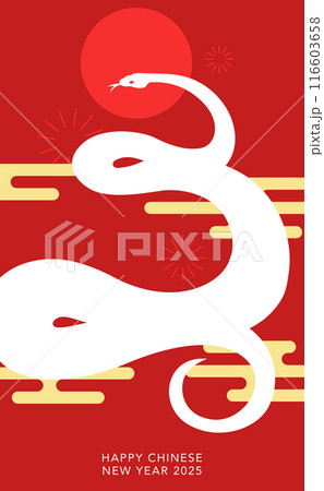 Happy chinese new year of the snake 2025 card with auspicious clouds