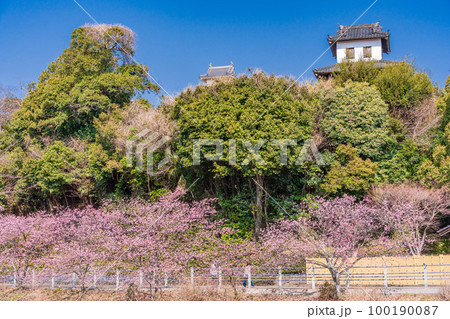 (静岡県)カケガワザクラ(掛川桜)越しの掛川城