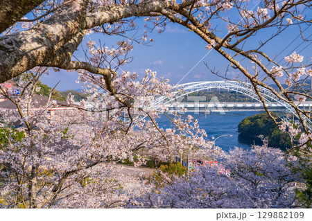 【長崎県】満開の桜と西海橋(針尾瀬戸)