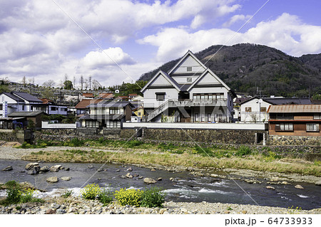 新見御殿町 高梁川沿いの街並み 岡山県新見市